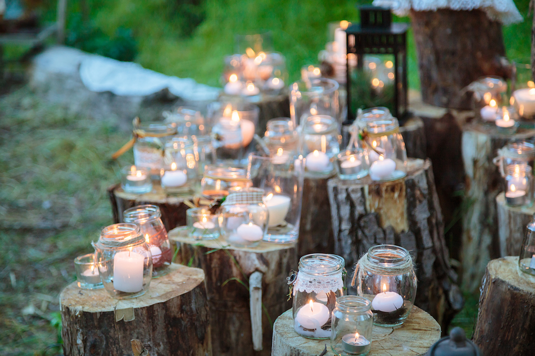 If you have a smaller patio and want to brighten it up without spending a fortune on installation, candles are the perfect, cheap solution. Line them along the perimeter of your deck, or set them on patio tables to create a beautiful scene at the next dinner party. If you want to protect your candles from blowing out with the wind, hurricane candle holders can keep them lit all night!