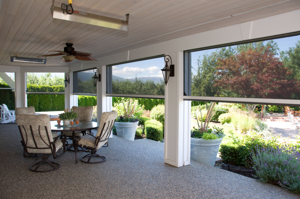 You may not be dealing with snow and sleet, but you’ll still want some refuge from the sun and bugs. Phantom’s motorized wall screens can be used to enclose any space, including wraparound porches, patios and decks.