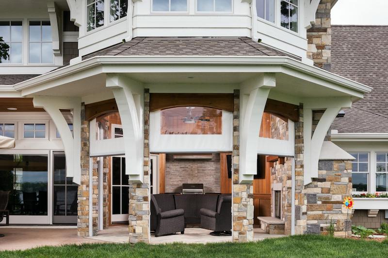 Another option is to screen in your porch with our motorized retractable vinyl walls. The vinyl provides a climate-controlled room when in use, protecting you and your guests from insects and the evening chill.