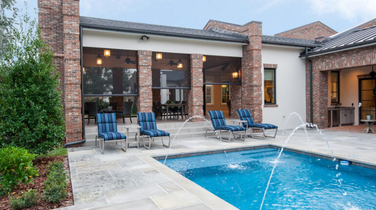 Whether you’re with friends and family or enjoying the afternoon solo, you’ll want to have room to store pool necessities like sunscreen and towels. The fun ends when you have to trek wet feet through the house to retrieve what you need. By layering in shelving, cabinets or storage benches, you’ll have exactly what you need at your fingertips while keeping your pool area free of clutter.