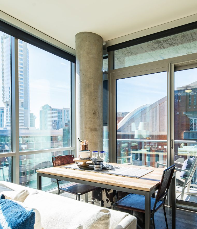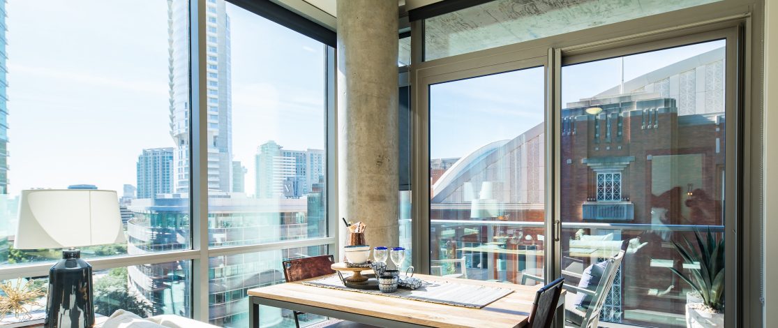 This high end condo is full of metallic finishes and glossy features, they let the air in all without compromising their home’s design.