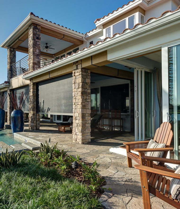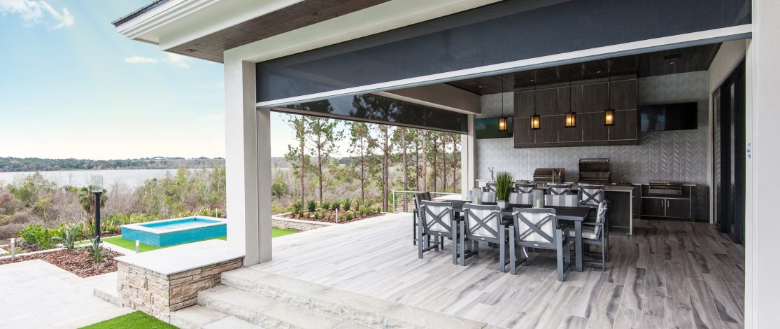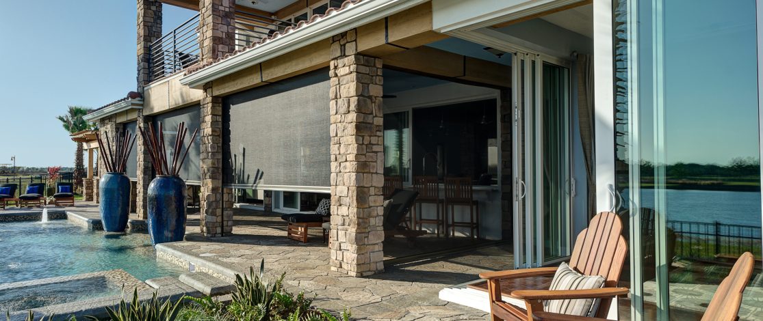 Our motorized, retractable screens vanish into a custom casing when you don’t need them.