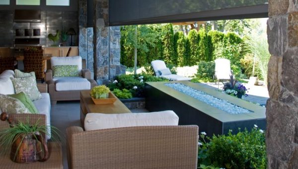 Located in Kelowna, BC, this private residence takes summer living completely outdoors. With lush gardens, fire pit, water feature and views to Okanagan Lake, the homeowners have turned their back porch to a true retreat.