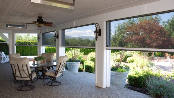 To enjoy their newly remodelled porch year-round, the homeowners needed a screening system that would block out insects but also retract when not in use for a clear view to the gardens.