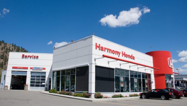 This successful car dealership, Harmony Honda, has been a part of the Kelowna community for over 25 years. Unfortunately, when the company moved to their current location they were faced with a problem very common to dealerships with large windows: afternoon glare and intense heat from the sun.