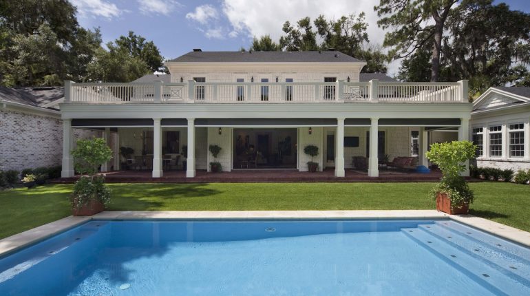 This traditional Georgian style home, located in Winter Park, FL, was custom designed by Phil Kean Designs with an open floor plan that connects to the lanai via pocketing glass windows and doors to maximize indoor/outdoor living and entertainment areas of the home.