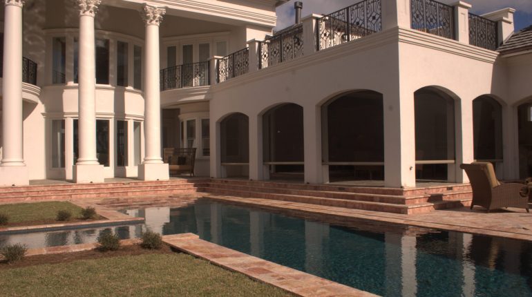 This executive home features an outdoor area perfect for entertaining and relaxing. The builders needed a screening solution that would provide insect protection while maintaining a clear view from the lanai to the pool.