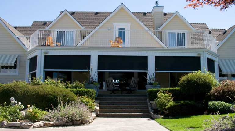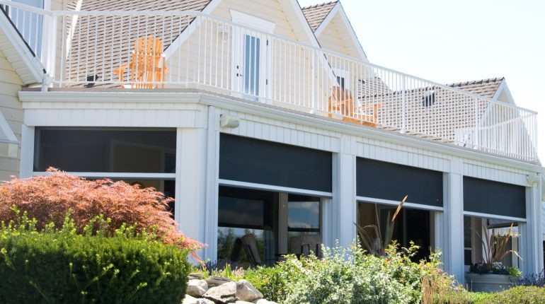 The homeowners chose Phantom’s motorized screens as the best solution for their porch. The screens recess into the porch’s archways to maintain the clean lines of the home’s design. The screens are completely out of sight when not in use, and can be lowered by the simple press of a button on a remote control or a control pad located near the door. The installation of the screens has allowed the home’s exterior spaces to be used comfortably from early spring to late fall, while preserving the views of the gorgeous garden.