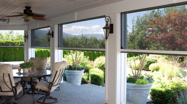 The homeowners love their covered porch and the protection from the elements it offers – allowing them to enjoy their gardens whatever the weather. Unfortunately, especially in the height of summer, they suffered the unwanted attention of insects and had to retreat indoors. They needed a screening solution which would act as a barrier without obstructing the view of their backyard and not take away from the simple and elegant design of their porch.