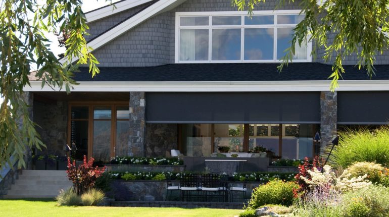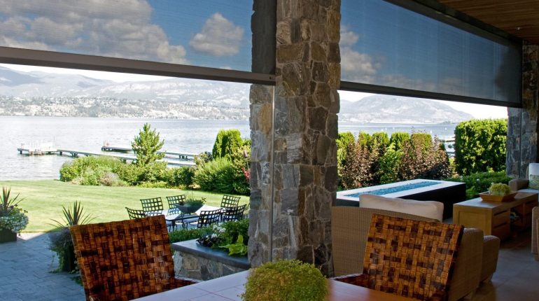 Well known for hot summers, the residents of the Okanagan area enjoy warm weather from early spring until late fall. The homeowners required a solution that would provide shade from the sun and protection from insects, while retaining the views to the lake and the gardens.