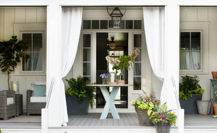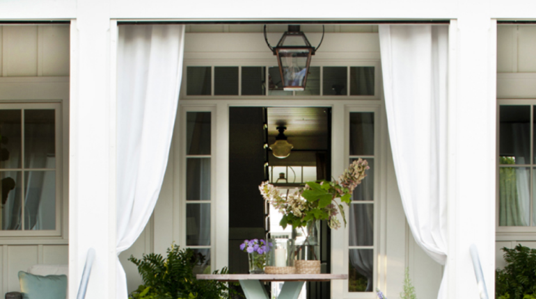 The design team needed to source a screen solution for the back porch that would enable future homeowners to create a secluded outdoor-living area where to relax and dine in comfort. It was important to find a screen that provides insect protection and offers relief from the afternoon sun, plus blends with existing architecture and the period style of the house.