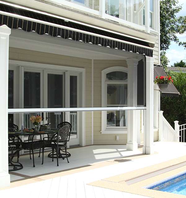 Our retractable screens are there when you want them, and disappear into a custom casing when you don't, so you can enjoy the scenery.